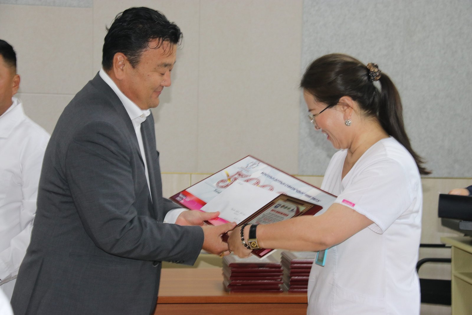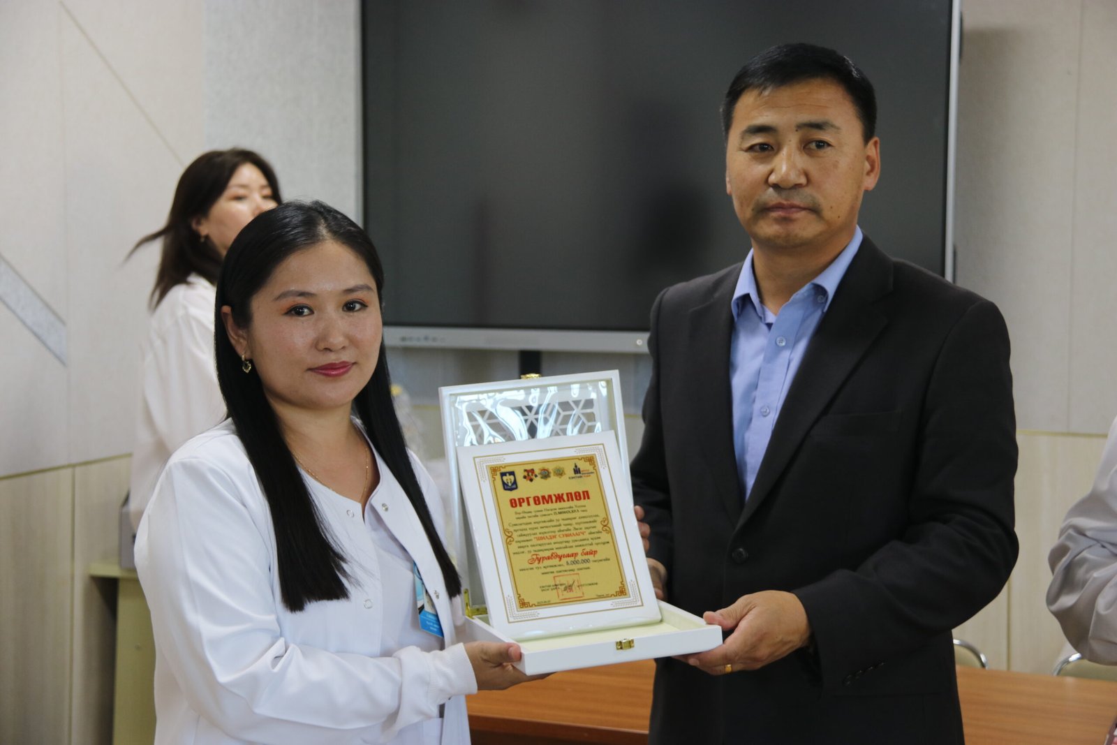 Тэгвэл уралдаанд шалгарсан шилдэг 20 сувилагчийн шагналыг аймгийн Засаг дарга Ц.Чогсомжав, засаг даргын орлогч Л.Батсайхан, ЭМГ-ын дарга Л.Мэндбаяр нар гардуулан өглөө.